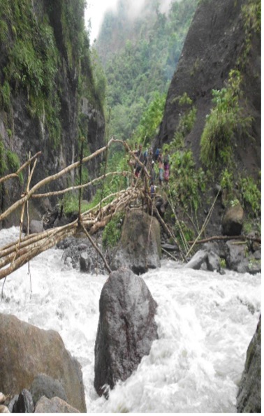 Nahu waterfall and footbridge over the Nahu (Gusap) River